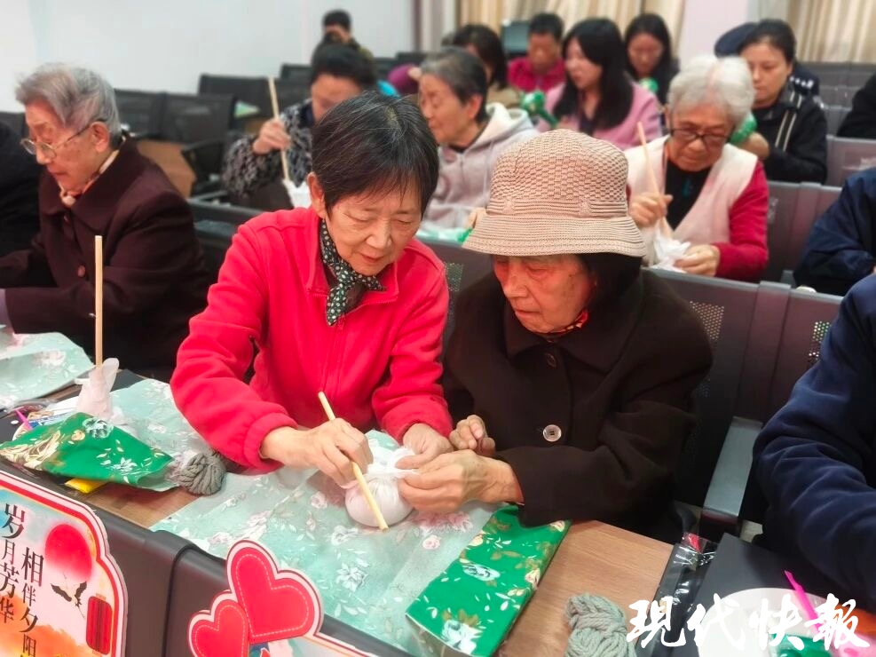 锁三社区将“茉莉花开”文艺直通车开进社区,经典老歌与民族舞蹈轮番上演。锁四社区的“匠心‘读城’坊”里,老人们一边制作重阳香牌,一边分享城市记忆与儿时习俗,在手工协作中深化了对传统节日的文化认同;锁五社区的老人们欢聚一堂,亲手制作艾草养生锤和重阳主题手工作品。