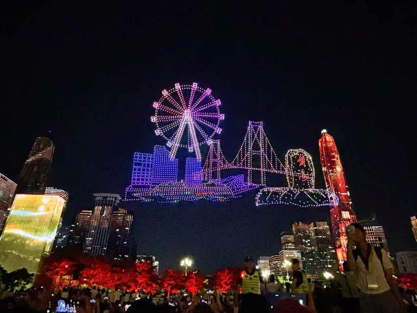 一场完美表演的背后,是一支专业团队的精密协作。高荣做了个形象比喻:“我们就像夜空中的导演组。”业务团队需要与客户反复沟通,将抽象创意转化为可行方案;设计团队要用专业软件将平面图案转化为三维动态效果;编程人员则需精心设计每架无人机的飞行轨迹,确保数千个光点在夜空中精准移动而不相撞。“最紧张的是现场执行阶段,”参与安吉项目的飞手童柯烊说,虽然程序都是预设好的,但他们要像保镖一样盯着每一架无人机。一旦出现突发状况,飞手需要立即启动应急预案,手动调整部分无人机的飞行参数。