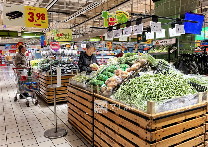 11月10日,苏州大型超市蔬菜水果供应货源充足,价格平稳,市民前来采购。管钰楠/摄 视觉江苏网供图出行暖护加码