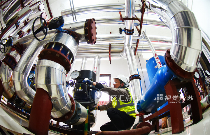 11月15日,连云港市海州区巨龙花园小区,工作人员正在检查、调试供热锅炉设备,确保用户温暖过冬。耿玉和/摄 视觉江苏网供图策划:田梅