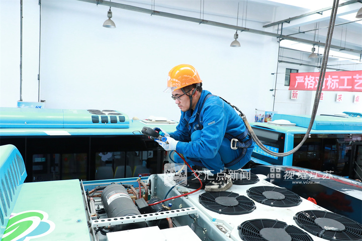 11月12日,无锡公交集团“暖冬行动”启动,组织修理工对所有公交车的暖风系统全面维护检修,确保乘客冬季温暖出行。陆晓明 吴洋/摄 视觉江苏网供图迎峰保电守冬暖