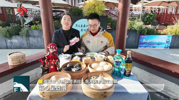 在位于泰州市区的百年早茶老店——留芳茶社,大厨们现场展示了挑干丝和摇藕粉圆子的技艺。虽然已经到中午,但是来吃早茶的食客依旧络绎不绝。其中,最受大家欢迎的就是茶社配合 “苏超”泰州队夺冠推出的“冠军套餐”!