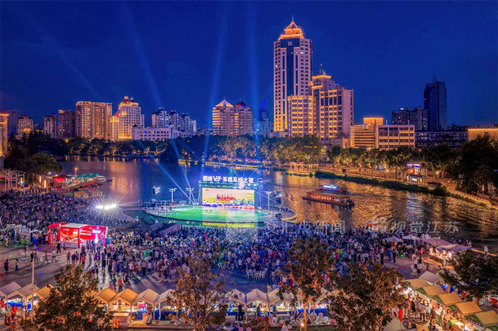 《“苏超”之夜》 6月29日,南通市环西文化广场,城市夜景灯火璀璨,足球狂欢点燃夏夜。刘荣根 摄