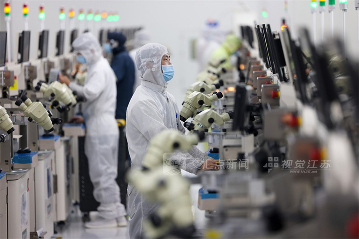 《新质之光》 12月9日,位于南京市的江苏长晶浦联功率半导体有限公司工人在加紧生产半导体封测产品。 陈俨 摄