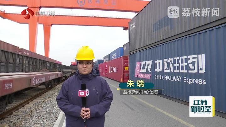 荔枝新闻中心记者朱瑞说:“这里是南京尧化门站货场,我身后的吊机正在紧锣密鼓地进行装载作业,这批约110标箱的洗衣机完成装载后将从这里启程,经由霍尔果斯口岸发往海外。”