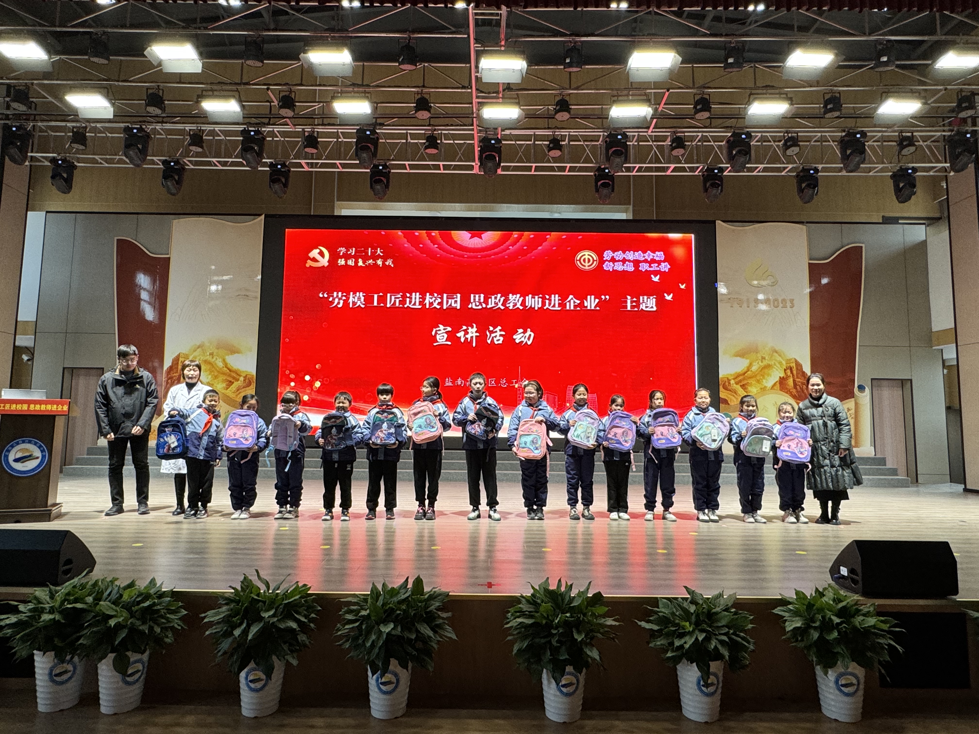 为进一步引导青少年学生牢固树立依靠劳动创造美好未来、托起中国梦的坚定信念,唱响“劳动光荣,创造伟大”的时代主旋律,近日,盐南高新区总工会在伍佑小学珠花剧场开展“劳模工匠进校园 思政教师进企业”宣讲活动。