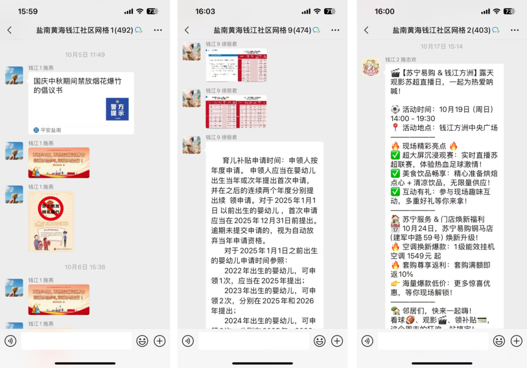 网格员摇身一变,成了网格微信群里的“信息使者”。每天,他们都会在群里定时推送各类便民服务信息,就像一场场“及时雨”,滋润着居民的生活。