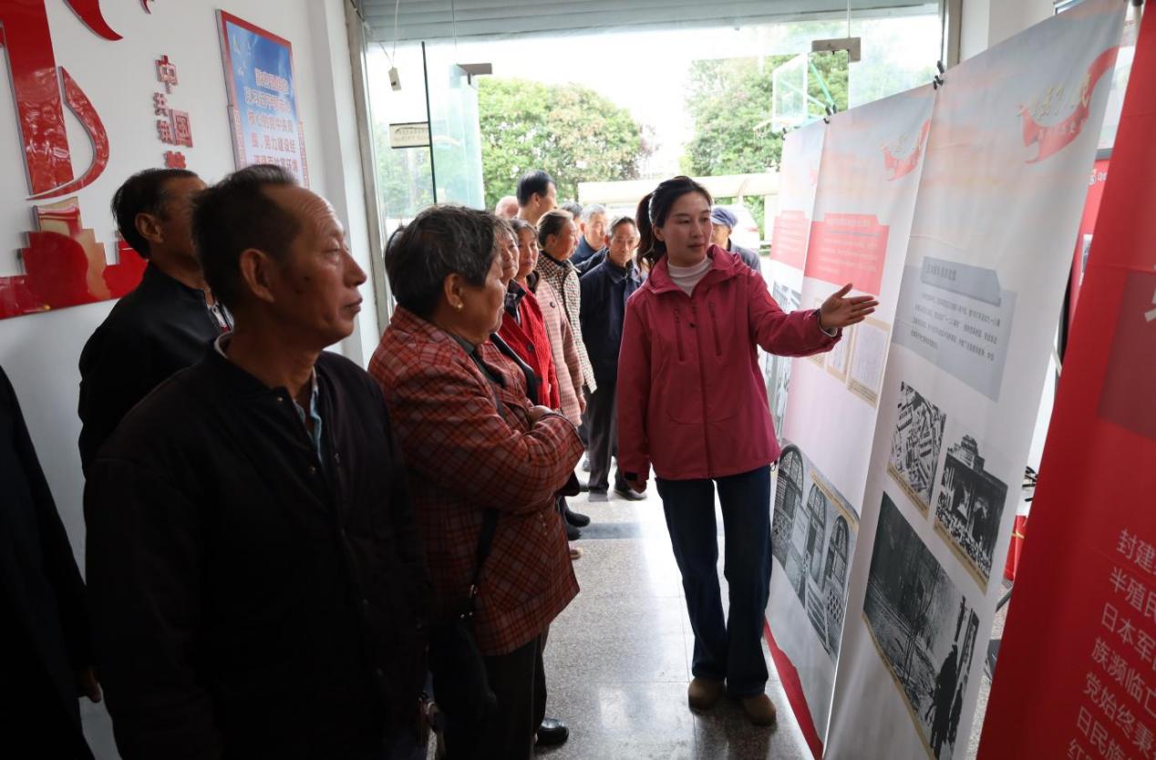 活动现场气氛热烈,村民们首先参观了《一切为了人民》——新四军历史展览。展板前,大家驻足细看,不时交流讨论,透过一张张珍贵的历史图片,村民们仿佛回到了那个烽火连天的革命年代。