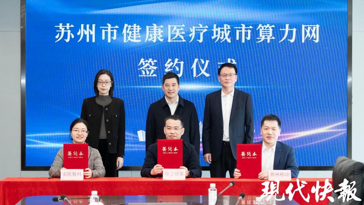 现代快报讯(通讯员 苏服)日前,苏州市健康医疗城市算力网三方合作签约仪式在相城区数智健康实验室举行。苏州市卫生健康委员会、中国移动江苏公司苏州分公司(以下简称苏州移动)与金医数科共同签署合作共建协议,携手构建“多方协同、价值共创”的健康医疗数智化发展新模式,为“健康苏州2030”规划的实施提供助力。