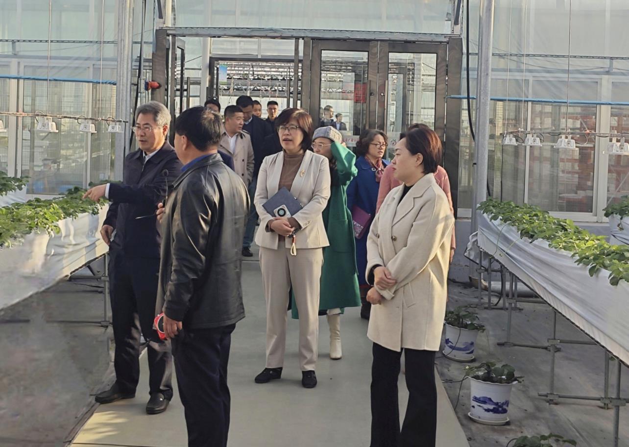 调研组一行先后来到现代农业产业园陈列馆、草莓直播间、草莓“智慧”大棚现场,详细了解新民村“农业+旅游”经营模式,交流了将高架无土栽培的智慧农业与线上直播销售、休闲采摘、亲子体验、科普教育有机结合起来的思路做法。该街道新民村通过挖掘本土特色和文化内涵,深度融合发展助推乡村振兴,持续提升广大人民群众的幸福感和获得感,为群众创造出更加幸福的美好生活的做法得到了调研组的认可。